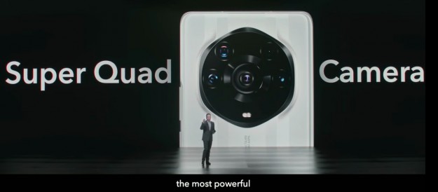 Смартфон получил ещё более впечатляющий дизайн с керамикой и лазерной отделкой, сильно изогнутый на кромках экран с защитой Nano Crystal и камеру, которую сама компания назвала Super Quad Camera — четверной суперкамерой, самой мощной в своём роде.