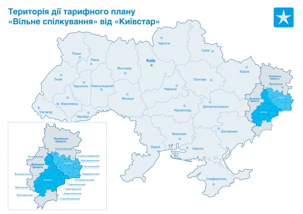 «Киевстар» предлагает льготный тариф в некоторых районах ДонбассаТарифный план «Киевстар. Свободное общение» действует в Амвросиевском, Артемовском, Волновахском, Марьинском, Старобешевском, Шахтерском, Ясиноватском районах Донецкой области. Также подключиться к этому тарифному плану смогут абоненты, которые находятся на территории Луганской области и проживают в Антрацитовском, Краснодонском, Лутугинском, Перевальском, Попаснянском, Свердловском, Славяносербском районах.