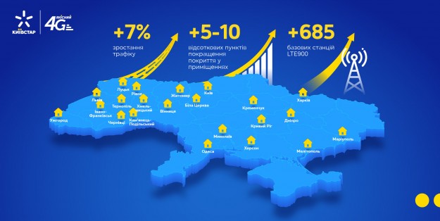 Среди новых городов, где заработал LTE900: Киев, Львов, Одесса, Харьков, Хмельницкий, Луцк, Ровно, Черновцы, Ивано-Франковск, Тернополь, Мелитополь, Белая Церковь и Каменец-Подольский. Всего же с начала года благодаря низким частотам Киевстар улучшил работу сети в 22 городах Украины, где в общей сложности проживает 12 млн человек.
