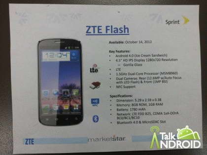 Китайская ZTE и оператор Sprint готовятся анонсировать прогрессивный Android-смартфонМодель получит название ZTE Flash, и будет работать под управлением Android 4.0 «из коробки». В системе будет задействован процессор MSM8960, тактовая частота которого 1,5 ГГц. Кроме того, «на борту» предусмотрено 1 ГБ оперативной памяти.