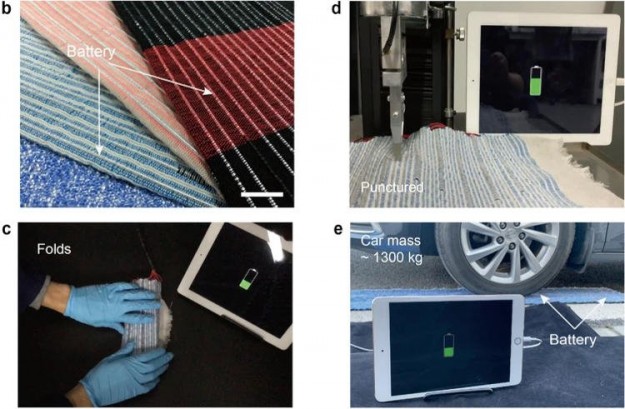 В рамках демонстрации создатели материала произвели беспроводную зарядку смартфона от надетой на человека футболки из этого текстиля. Но применяться разработка может не только для создания нательного повербанка. Умная одежда становится трендом: на свет появились носки, которые оценивают технику прыжков своего владельца; купальники, которые напоминают нанести крем от солнца; есть даже штаны для йоги, которые корректируют неправильные позы. В большинстве случаев все подобные устройства питаются от литий-ионных аккумуляторов, которые не гнутся и не работают в воде. Аккумулятор из текстильного волокна представляется серьёзным шагом вперёд и открывает новые возможности для нательных электронных устройств.