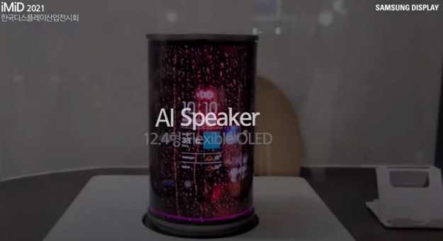 Компания Samsung Display показала прототип умной колонки со складным дисплеем OLED размером 12,4 дюймаЭкран, облегающий цилиндрический корпус устройства, может распрямляться, чтобы его было видно полностью На мероприятии iMID 2021, которое прошло в Южной Корее, компания Samsung Display показала прототип умной колонки со складным дисплеем OLED размером 12,4 дюйма.