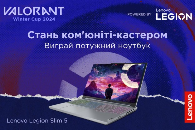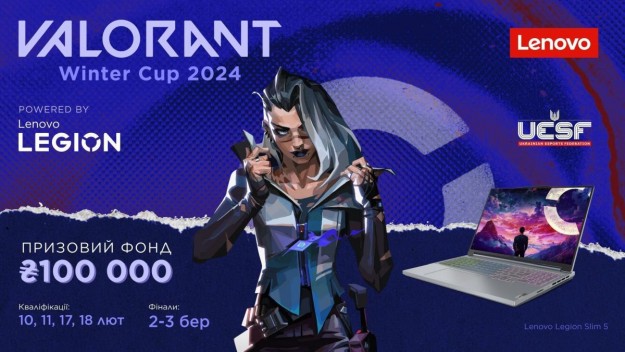 Компанія Lenovo оголосила про старт всеукраїнського турніру Valorant Winter Cup 2024Компанія Lenovo оголошує про старт всеукраїнського турніру Valorant Winter Cup 2024 з призовим фондом 100 000 гривень. Це офіційний Чемпіонат від Федерації кіберспорту України (UESF), за результатами якого визначать збірну України з Valorant на 2024 рік. Також для Valorant ком?юніті проведуть конкурс ком’юніті-кастерів, серед яких розіграють ноутбук Lenovo Legion Slim 5.