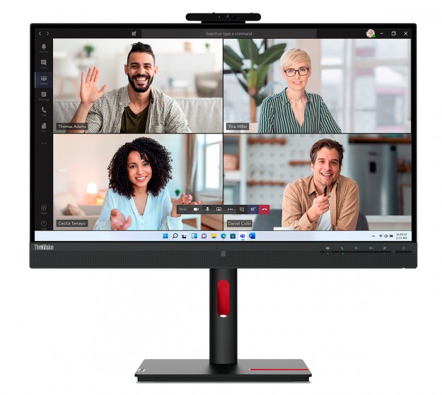 Монітори ThinkVision Mini LED з діагоналлю 27 і 32 дюйми підтримують формати HDR10 і HLG та сертифіковані за стандартом DisplayHDR1000, що дозволяє досягти пікової яскравості 1200 ніт. Обидва монітори, створені для творчих людей, підтримують двоколірні стандарти — DCI-P3 та Adobe RGB7 — для роботи з графікою та відео, а також мають вбудовану технологію без мерехтіння, яка допомагає зменшити втомлюваність очей. Вони також оснащені програмним забезпеченням ThinkColour від Lenovo, яке дозволяє легко конфігурувати кольори та керувати налаштуваннями дисплея за допомогою простого інтерфейсу "наведи та клацни". Інтуїтивно зрозумілі LED-монітори ThinkVision Mini також оснащені енергоощадними датчиками виявлення людини та освітленості, які автоматично затемнюють екран, коли користувач відходить, і можуть регулювати яскравість екрана відповідно до кількості виявленого навколишнього освітлення. Завдяки зручному док-станку USB4, міні-світлодіодні монітори ThinkVision Mini підтримують діагностику операційної системи й можуть підключатися до USB-C або Thunderbolt-сумісних ноутбуків, мобільних телефонів і планшетів, забезпечуючи передачу даних і відео зі швидкістю до 40 Гбіт/с по одному кабелю USB4, а також можуть підтримувати до двох UHD-моніторів, з'єднаних в послідовний ланцюжок. Ці монітори, здатні забезпечувати до 15 Вт потужності для смартфонів і 140 Вт для інших пристроїв, тепер можуть заряджати більш потужні ноутбуки. Завдяки широкому набору портів, що включає три порти Type-C, чотири Type-A, два порти HDMI 2.1, а також порти Ethernet і DP, монітори ThinkVision Mini LED надають користувачам можливість підключення до різних пристроїв і швидкість передачі даних, необхідну для більш продуктивної та ефективної роботи. Монітори ThinkVision Mini LED виготовлені з екологічно чистих матеріалів, включаючи 90% алюмінію PCC в підставці, 95% ABS в задній кришці та 85% ABS в рамці та підставці, що є вторинною сировиною. Це також перші монітори Lenovo, коробка та пакети яких виготовлені з матеріалів на основі волокон і які відповідають вимогам програми компенсації викидів CO2 від Lenovo. Створені для гібридної роботи: монітори ThinkVision VoIP (T27hv-30, T24mv-30 і T24v-30)Розроблене для сучасних працівників, останнє покоління моніторів ThinkVision VoIP від Lenovo отримало інтегровані, вдосконалені функції, які покращують і спрощують досвід проведення віртуальних зустрічей. Завдяки оновленій камері високої чіткості з роздільною здатністю 5 Мп9 з інфрачервоним (ІЧ) датчиком, а також окремим RGB-об'єктивом і затвором для забезпечення конфіденційності, вбудованим подвійним мікрофоном з функцією шумопоглинання і двом вбудованим динамікам потужністю 5 Вт, користувачі отримають чіткіше зображення під час відеодзвінків. Новинкою цього покоління є спеціальна кнопка Microsoft Teams, яка миттєво запускає застосунок для відеодзвінків. Тепер користувачі можуть швидко перейти до наступного виклику, не шукаючи його на робочому столі, і навіть керувати гучністю та вимкненням звуку простим натисканням кнопок, розташованих на передній панелі монітора, які легко знайти. Для більш ефективного початку робочого дня представників розумової праці можна скористатися автоматичним входом в систему за допомогою Windows Hello, який є надійним та безпечним. Інші смартфункції, якими можна легко керувати за допомогою налаштувань, включають “розумний” світлофор, який стає червоним, коли користувач розмовляє телефоном
