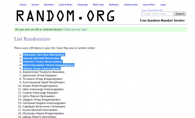 Среди всех участников розыгрыша, правильно ответивших на конкурсные вопросы, случайный выбор сервиса http://www.random.org/lists/ пал на: