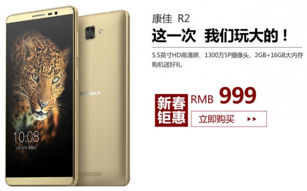 Новинка оснащена 5.5-дюймовым OGS-дисплеем с разрешением 1280х720 пикселей, прикрытым защитным стеклом Corning Gorilla Glass 2, 1 ГБ оперативной памяти и 16 ГБ встроенной, а также 5Мп фронтальной камерой и 8Мп основная от Sony. Konka R2 будет продаваться в Китае по цене $152. Джерело: SmartPhone.ua Обговорення новиниZapNizMid: Модераторы, уберите противоречие. В одной статье различные данные по камерам и пр. Попередні новини
