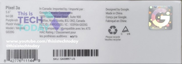Коробка «фиолетовенького» Google Pixel 3a в подтвердила характеристикиВсе ближе становится конференция Google I/O 2019, в рамках которой будет представлена линейка относительно доступных камерофонов Pixel 3a. Пока мы ждем официальной презентации, некоторые счастливчики уже получили свои экземпляры. Свою радость от этого они передали новой утечкой, подтверждающей некоторые ключевые особенности. Опубликованные снимки заводской упаковки Google Pixel 3a (G020G) в цвете Purple-ish (эдакий «фиолетовенький») подтвердили в который раз дизайн в стиле Pixel 3 (но в корпусе из пластика), а также некоторые технические характеристики: 5,6’’ дисплей, 64 ГБ встроенной памяти в базовой версии (источник от себя добавил, что будет версия на 128 ГБ).