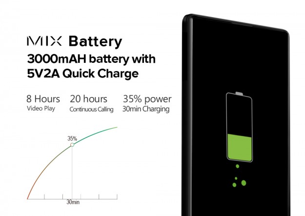 KIICAA MIX поддерживает быстрый заряд 5В2A, что достигается как аппаратной начинкой, так и оптимизацией программного обеспечения, процесс зарядки теперь стал быстрее и безопаснее. С новым типом литиевого аккумулятора большой емкости батарея LG 3000 мач в KIICAA MIX не только стабильна, но и долговечна. После 600 раз зарядки и разрядки аккумулятор сохраняет 80% от начальной номинальной мощности. Технические характеристики: