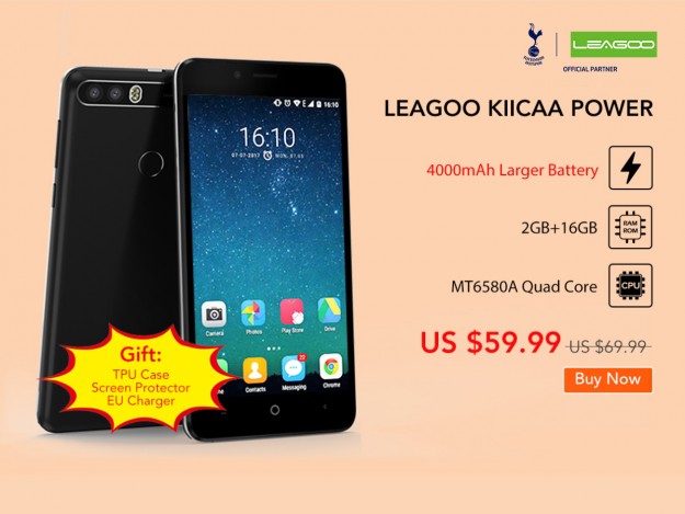 В качестве бюджетного телефона начального уровня, самым интересным моментом LEAGOO KIICAA Power является его батарея высокой плотности на 4050 мАч. К тому же это чрезвычайно выносливый аккумулятор! После 500 раз зарядки и разрядки, по меньшей мере 90% от его первоначальной номинальной емкости по-прежнему сохраняется. Телефон также поддерживает быструю зарядку 5В/2A и гарантирует 8 разных типов защиты при заряде. Кроме того, LEAGOO KIICAA Power получил 5.0-дюймовый HD-дисплей, процессор MT6580, 2 ГБ ОЗУ, а также 16 ГБ встроенной памяти. Он также двойной камерой 8 + 5 Мпикс. и 5-мегапиксельной фронтальной камерой, а также сканером отпечатка пальцев на тыльной крышке.