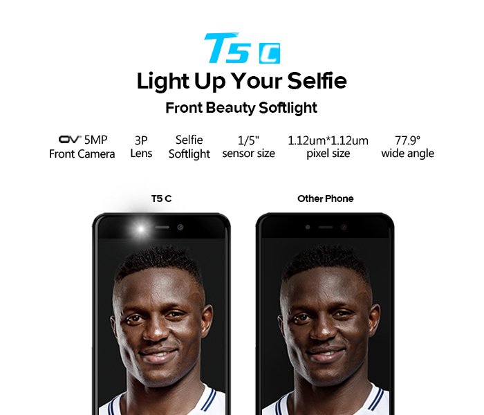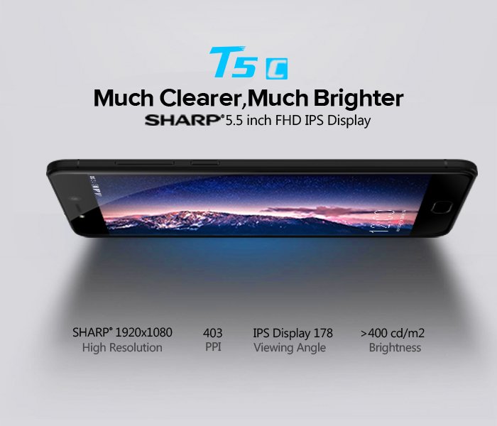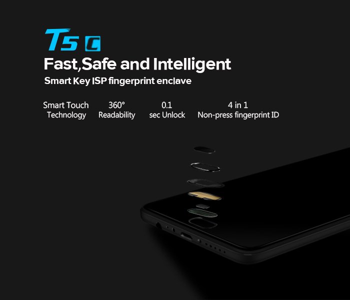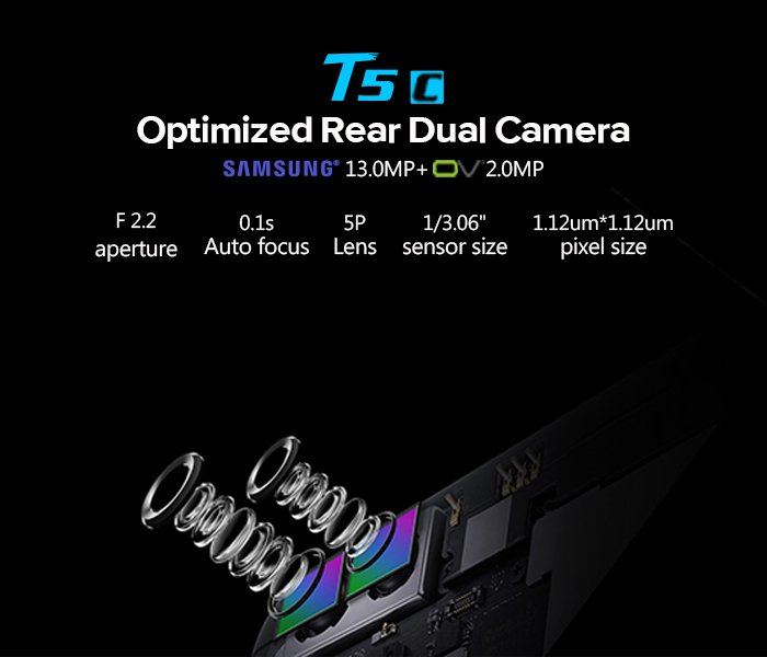 LEAGOO T5c будет оснащен 1.8-гигагерцовым 8-ядерным процессором, двойной камерой SAMSUNG 13.0MP + OV 2.0MP и 5,5-дюймовым дисплеем SHARP FHD IPS. Он получит память объемом 3 ГБ + 32 ГБ, что немного отстает от T5, но у него все еще есть большая батарея LG на 3000 мАч с быстрой зарядкой 5В2A. Хорошей новостью является то, сканер отпечатка пальцев размещен на передней панели.