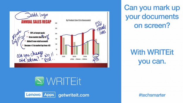 Lenovo анонсировала приложение WRITEit 2.0, превращающее экран девайса в цифровой холстКомпания Lenovo представила обновленное приложение WRITEit 2.0 с расширенными функциональными возможностями, благодаря которому по-новому раскрывается потенциал устройств с сенсорным экраном. Бесплатная утилита WRITEit 2.0 работает на устройствах Lenovo с ОС Windows 8 и Windows 10, оснащенных сенсорным дисплеем, который она превращает в цифровой холст, на котором пользователи могут с легкостью выделять текст, писать, чертить и рисовать все, что угодно.