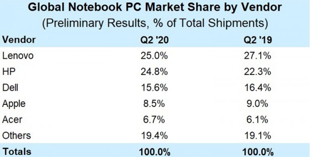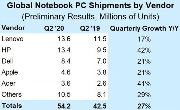 Компания Strategy Analytics сообщает о взрывном росте спроса на портативные компьютеры: на фоне пандемии поставки ноутбуков во втором квартале нынешнего года подскочили на 27 % по сравнению с тем же периодом 2019-го.