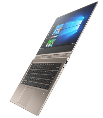 С уникальным дизайном Yoga 910 вы всегда будете центром внимания в любом окружении – тонкий металлический корпус золотого или серебристого цвета и тщательно продуманный шарнир, напоминающий браслет для часов, поражают своим внешним видом и надежностью. Металл и особая конструкция дают уверенность в прочности и функциональности устройства – в любом положении сенсорного экрана Yoga 910 выглядит совершенно. Привлекает внимание и сам экран – практически полным отсутствием рамки (5 мм).