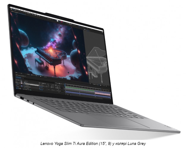 На додаток до функцій Lenovo Aura Edition, Lenovo Yoga Slim 7i Aura Edition (15?, 9) входить у серію пристроїв Intel Evo Edition на базі процесорів Intel Core Ultra (Series 2) з 8-ядерним гібридним процесором і високопродуктивною графікою (GPU) для плавної та ефективної роботи під час виконання складних завдань. Нейронний процесор (NPU) з понад 45 TOPS прискорює роботу додатків на основі штучного інтелекту для творців, яким потрібна обчислювальна потужність з підтримкою штучного інтелекту. До 32 ГБ оперативної пам'яті ноутбука з частотою 8533 МГц дозволяє користувачам легко виконувати багатозадачні завдання, а SSD-накопичувач ємністю до 1 ТБ забезпечує достатньо місця для зберігання великих файлів і швидкого доступу до даних. Розроблений для тривалих творчих сесій, акумулятор ємністю 70 Вт-год гарантує, що користувачі зможуть працювати над своїми проектами в перервах між підзарядками. Wi-Fi® 7 і Bluetooth® 5.4 забезпечують швидке та стабільне бездротове з'єднання. Кілька портів, включаючи Thunderbolt™ 4, надають універсальні можливості для підключення периферійних пристроїв, швидкої передачі даних і розширення можливостей ноутбука. Ці особливості роблять Yoga Slim 7i Aura Edition винятковим вибором для користувачів, яким потрібна висока продуктивність, приголомшливі візуальні ефекти та надійний зв'язок у їхніх творчих починаннях. Ноутбук також сертифікований як вуглецево нейтральний, і, як і всі ноутбуки Lenovo Yoga, постачається з безкоштовною 2-місячною підпискою на Adobe Creative Cloud.