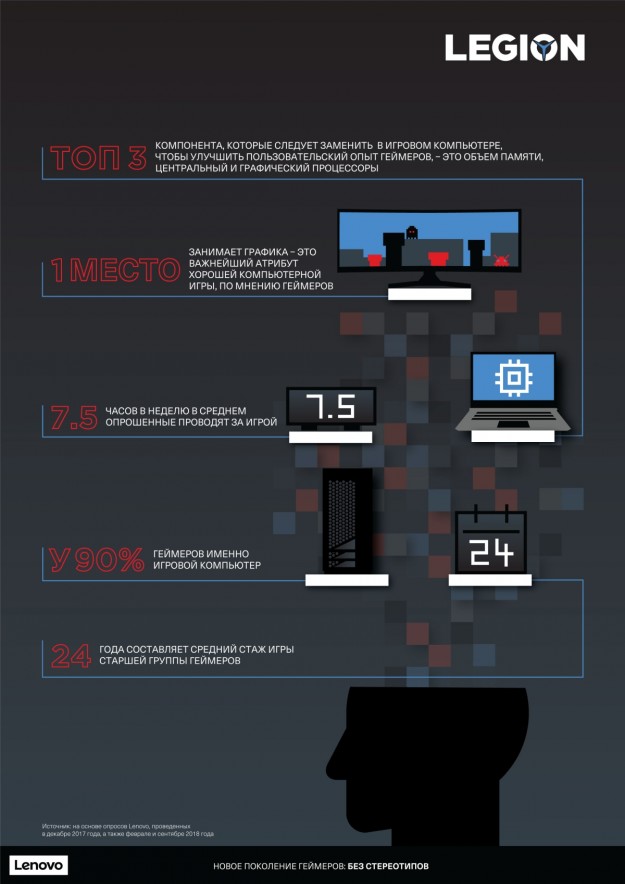 Lenovo представляет результаты исследования предпочтений и поведения геймеровКомпания Lenovo провела исследование поведения геймеров и определила их ожидания относительно компьютеров и другого аппаратного обеспечения для игр. Первые компьютерные игры появились благодаря энтузиастам, которые нашли новое применение неиспользованному прежде потенциалу персональных компьютеров (ПК). Сначала сторонниками таких игр стали подростки, у которых было достаточно свободного времени. Отсюда и популярный до сих пор стереотип о том, что основное ядро компьютерных игроков – школьники и студенты. Однако, подростки стали старше, и индустрия игр выросла вместе с ними. Бизнес не должен принимать стратегические решения, основываясь только на предположениях о клиентах. Нужно общаться непосредственно с пользователями, ведь это единственный способ по-настоящему понять их желания, потребности и возможности их удовлетворить, – комментирует Дилип Бхатия (Dilip Bhatia), вице-президент по глобальному маркетингу, опыту пользователей и клиентов Lenovo. В ходе исследования компания Lenovo опросила 7 800 своих пользователей по всему миру. Его цель ? узнать, кем являются современные геймеры и каковы их ожидания от ПК, которые у них уже есть или будут в будущем. Исследование показало, что существует как минимум пять различных групп компьютерных игроков. Компания Lenovo описала их различия, общие черты, а также ожидания касательно новых настольных компьютеров и ноутбуков. По словам Дилипа Бхатии (Dilip Bhatia), определенные черты портрета обычных геймеров со временем меняются, однако их страсть к мощным и удобным компьютерам остается неизменной. Поэтому компания продолжит фокусироваться на создании специализированного аппаратного обеспечения для игрового сообщества под брендом Legion. Ключевые результаты исследования: