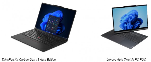 Крім того, Lenovo представила ThinkPad T14s Gen 6 AMD та ThinkBook 16 Gen 7+, оснащені процесорами AMD Ryzen™ з підтримкою ШІ, які демонструють виняткову багатозадачність, творче самовираження та енергоефективність. Додатково, Lenovo представила ThinkBook 16 Gen 7, оснащений 8-ядерним процесором Snapdragon® X Plus, який забезпечує високу продуктивність завдяки штучному інтелекту для малого та середнього бізнесу. Lenovo також анонсували AI PC Fast Start. Рішення, розроблене, щоб допомогти організаціям швидко перейти на пристрої зі штучним інтелектом, максимізуючи рентабельність інвестицій завдяки консультаціям на основі ШІ та спрощеному розгортанню. Завдяки відзначеній нагородами підтримці Lenovo, ці сервіси прискорюють впровадження штучного інтелекту та забезпечують безперебійну роботу. Lenovo продемонстрували концепт пристрою Lenovo Auto Twist AI PC, що переосмислює взаємодію користувача з розумною автоматизацією та штучним інтелектом. Цей пристрій має першу в галузі конструкцію з автоматичним поворотом, що поєднує в собі гнучкість на основі штучного інтелекту, розумну взаємодію та підвищену безпеку для створення безперебійної та ергономічної роботи з комп'ютером. Розширення можливостей споживачів за допомогою технології ШІ Для споживачів Lenovo представили кілька різних ноутбуків. Lenovo Yoga Slim 7i Aura Edition (15?, 9), розроблений у співпраці з Intel, являє собою вершину преміум-дизайну та інноваційних технологій. Цей ноутбук включає в себе ряд функцій Lenovo Aura Edition, розроблених для покращення користувацького досвіду, зокрема Smart Modes, Smart Share та Smart Care. Оснащений процесором Intel Core Ultra з високопродуктивною інтегрованою графікою та додатковим сенсорним OLED-дисплеєм з роздільною здатністю 2,8K, що забезпечує приголомшливе зображення, ноутбук призначений для виконання складних завдань.
