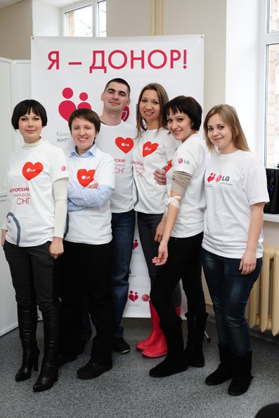 В Украине донорское движение стартовало в июне 2011 года в рамках социального проекта «Краплина крові – життя людини!» компании LG Electronics Украина. Этого времени хватило, чтобы провести 4 акции по забору крови и основать номинацию на тему донорства на Украинском студенческом фестивале рекламы. В результате было собрано 97 литров крови и ее компонентов. В проекте приняли участие 257 добровольных донора, среди них такие известные личности, как ведущая Даша Малахова, олимпийский чемпион Денис Силантьев, певец Валерий Харчишин и хореограф Алена Шоптенко.