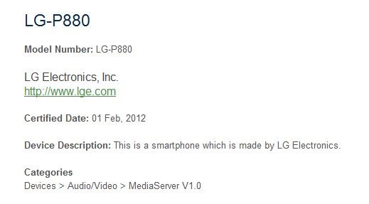 LG P880 и P700 будут представлены на MWCСмартфоны, известные пока лишь за номерами LG P880 и P700 будут официально представлены на конгрессе MWC. По предварительной информации LG P880 является достаточно мощным аппаратом, с HD-дисплеем разрешением 1280 х 720, процессором TI OMAP 44x0, в сочетании с 1 Гб оперативной памяти. Работает трубка под Android 4.0 Ice Cream Sandwich.