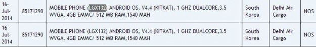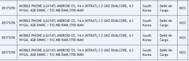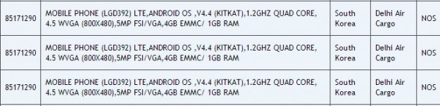 Фрагмент документа информирует о том, что тестовые экземпляры устройств прибыли из Южной Кореи в Индию на тестирование. LG D392 оснащен дисплеем диагональю 4.5 дюйма с разрешением 800х480 пикселей, 4-ядерным процессором с тактовой частотой 1.2 ГГц, 1 ГБ оперативной памяти и 4 ГБ встроенной памяти, а также 5Мп камерой и VGA-фронтальной, поддержкой высокоскоростных 4G LTE-сетей. LG X147 получил от производителя 4.3-дюймовый дисплей с разрешением 800х480 точек, 2-ядерный чип с частотой 1,3 ГГц, 512 МБ ОЗУ и 4 ГБ ПЗУ, а также аккумулятор на 1700 мАч.