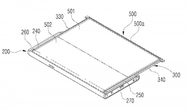 Управление США по патентам и торговым маркам (USPTO) выдало компании LG Electronics патент на «Устройство с гибким дисплеем» (Flexible display device). В документе описывается новый смартфон с вытягивающимся экраном.