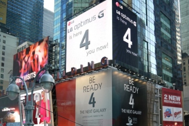 LG пытается отодвинуть на задний план презентацию Samsung Galaxy S IVКомпания Samsung активно использует цифру «4» в рекламной компании, приуроченной грядущей презентации смартфона Galaxy S IV. И это в принципе логично, учитывая популярность Galaxy S III, цифра "4" явно ассоциируется у людей с новой моделью смартфона от корейского производителя. Беда только в том, что подобной рекламе легко подражать, что и сделала LG, которая прямо над рекламой Samsung в центральной части Манхэттена в Нью-Йорке на площади Таймс-сквер разместила свою. За несколько часов до официального анонса Galaxy S IV рядом с тизерным постером Samsung появился подобный по стилю тизер-плакат LG, который рекламирует смартфон Optimus G.
