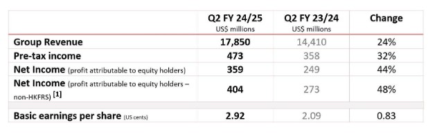 Lenovo Group Limited разом зі своїми дочірніми компаніями ("Група") оголосила результати другого кварталу 2024/25 фінансового року, повідомивши про значне збільшення прибутку, зростання доходів 4-й квартал поспіль, а також двозначне зростання доходів від усіх бізнес-груп.