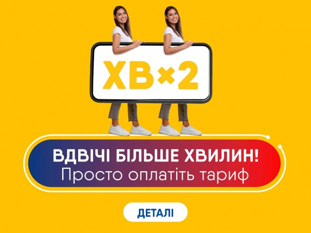 Згідно з умовами акції «Вдвічі більше хвилин» абоненти, що оплатять свій тариф з 8 квітня до 31 травня 2022 року, і вони автоматично отримають удвічі більше хвилин, ніж передбачено їхнім пакетом послуг.