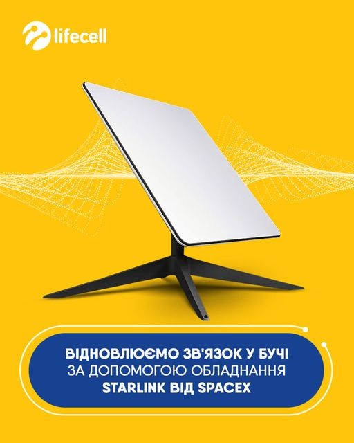 Оператор включив дві базові станції у м.Буча, які забезпечують роботу всіх технологій, 2G/3G/4G, за допомогою обладнання Starlink від SpaceX. Після звільнення Київської області від окупації оператор lifecell продовжує відновлювати мобільний зв'язок в населених пунктах, де раніше забезпечити покриття було неможливо через військові дії. У Бучі Київської області відновлено мобільний зв’язок lifecell за допомогою підключення базових станцій до системи супутникового інтернету Starlink. Використання такої системи дозволяє швидко відновити мережу в регіонах, де транспортна мережа фізично пошкоджена і її ремонт потребує часу. Супутникова складова як компонент транспортної мережі – це революційне рішення для українського ринку, яке в умовах війни дозволяє операторам швидко відновлювати зв’язок на звільнених територіях. Використання Starlink не залежить від звичайної інтернет-інфраструктури, адже супутникова система стійка до пошкоджень і здатна забезпечити безперебійне з'єднання. Відтепер зв’язком lifecell на базі Starlink забезпечено Бучанську міську раду, Ірпінську центральну міську лікарню (м.Буча), місцеву продуктову мережу, аптечну інфраструктуру та всіх абонентів оператора, які наразі перебувають у Бучі.