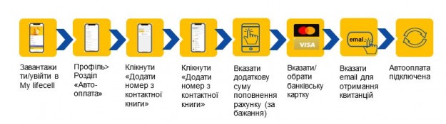 lifecell запустив послугу «Автооплата» у застосунку «Мій lifecell»lifecell першим серед мобільних операторів реалізував послугу «Автооплата» – із нею всі індивідуальні абоненти зможуть налаштувати автоматичну оплату пакету послуг банківською карткою. У разі зміни тарифу чи його вартості сума та (або) дата наступної оплати оновлюються автоматично. Автооплата – зручний інструмент, який дає можливість індивідуальним абонентам не витрачати час на контроль дати оплати тарифу: оплата пакету послуг собі та рідним з банківської картки у застосунку «Мій lifecell» тепер є автоматичною. Підключення послуги без додаткової плати доступне для абонентів lifecell, що обслуговуються як на умовах передплати, так і на умовах індивідуального контракту. До автооплати абонент може підключити до 10 номерів. Як це працює?За один день до дати оплати пакету послуг за тарифом після 20:00 з банківської картки абонента знімається сума, що відповідає вартості тарифу, та додаткова сума поповнення рахунку (якщо абонент її вводив). Наступна автоматична оплата відбудеться через 4 тижні або через 30 днів – згідно з розкладом і без комісії. Безпека платіжних даних гарантована міжнародним сертифікатом PCI DSS (Payment Card Industry Data Security Standard), що свідчить про надійний захист під час транзакцій. За перші три автооплати абонент отримує кешбек – 10% від вартості пакету послуг за тарифом – на бонусний рахунок. Якщо в абонента виникла потреба перезамовити пакет раніше, відбудеться автоматичне оновлення дати наступної оплати і повторного зняття коштів не станеться. Чим автооплата відрізняється від звичного автопоповнення?