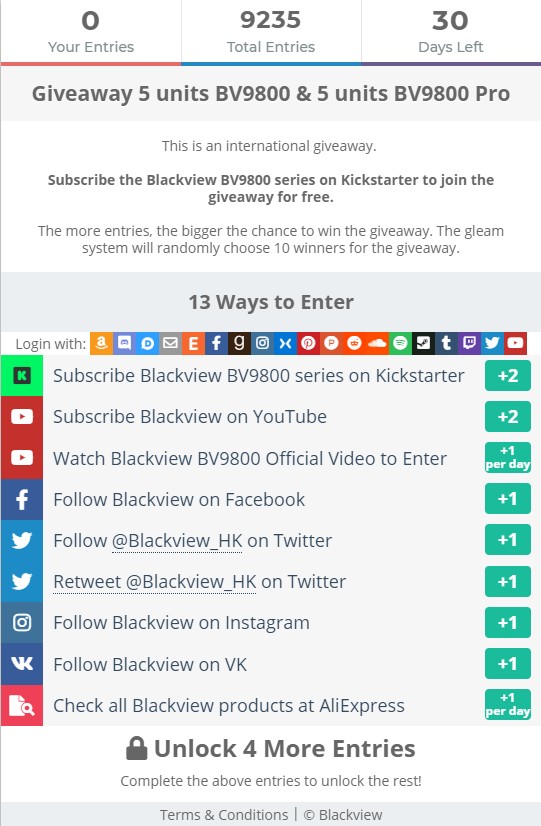 BV9800 Pro - одно из самых интересных защищенных устройств, которое вы можете взять с собой в поход. Смартфон весит около 322 г, что позволяет его легко носить его с собой куда угодно. Для людей, которые хотят отправиться в необычное и захватывающее, обычно опасное путешествие и особенно любят фотографировать, BV9800 Pro – скорее всего, лучший выбор. Это, безусловно, один из лучших защищенных телефонов с отличной камерой, который вы скоро сможете купить сегодня. На своем официальном сайте Blackview проводит огромную раздачу телефонов, чтобы набрать 10 тестеров, которые помогут с тестированием устройств и дать обратную связь инженерам. У каждого может быть шанс стать пробным пользователем. Для этого нужно выполнить определенные действия и иметь немного везения. Серия Blackview BV9800 появится на Kickstarter 18 октября. Вы можете присоединиться к огромной раздаче и узнать больше деталей о краудфандинге по ссылке: http://bit.ly/2pfArRI