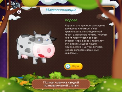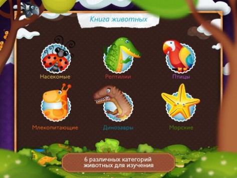 В игре лото представлены 2 категории, сама игра «Лото» и «Книга». Играть могут два, три и даже четыре человека одновременно. У каждого игрока своя карточка, на которой представлено 12 животных с номерами, выиграет тот игрок, который быстрее всех закроет всю карточку. В лото играть могут даже самые маленькие, т.к. каждый номер сопровождается красочной картинкой. Все картинки озвучены профессиональным диктором. В игре можно менять текстуры фона, включать или выключать фоновую мелодию и звук.