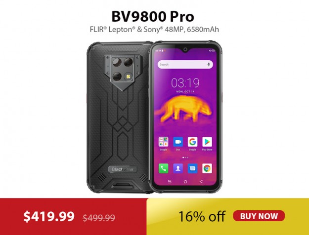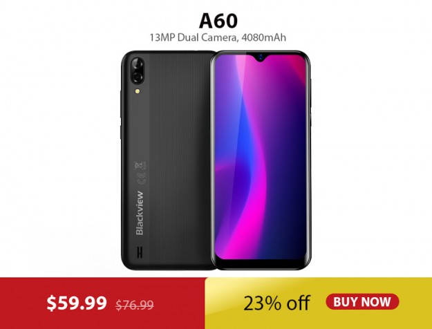 Blackview BV9800 Pro - это 6,3-дюймовый защищенный телефон в сочетании с тепловизионной камерой, которая позволяет видеть в темноте и измерять температуру. BV9800 Pro - это инструмент, без которого не смогут обойтись профессионалы. Кроме того, в телефоне 48-мегапиксельная камера Sony и батарея емкостью 6580 мАч. Blackview A60 - $59.99, скидка 23%
