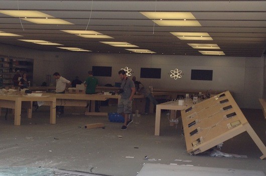 «Когда я приехал, они уже заблокировали место, где было затопление, и пытались контролировать ситуацию, подставляя мусорные ведра на полу, чтобы собрать воду. Они накрыли товары на витрине. Неясно, какой ущерб был нанесен». Уверены, представители Apple уже разбираются в деталях случившегося. Что в калифорнии?Сообщается, что в США произошел инцидент с грабителями, которые пробили стеклянный фасад и повредили металлические ворота безопасности, прихватив с собой некоторую ценную технику Apple. Судя по фотографиям, грабители оставили много смартфонов Apple и сбежали, оставив огромный беспорядок и повреждения. Возможно они искали новые смартфоны iPhone 13 или концепты, которые еще не показывали публике?!