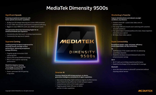 MediaTek представила скорочений флагманський мобільний процесор Dimensity 9500s