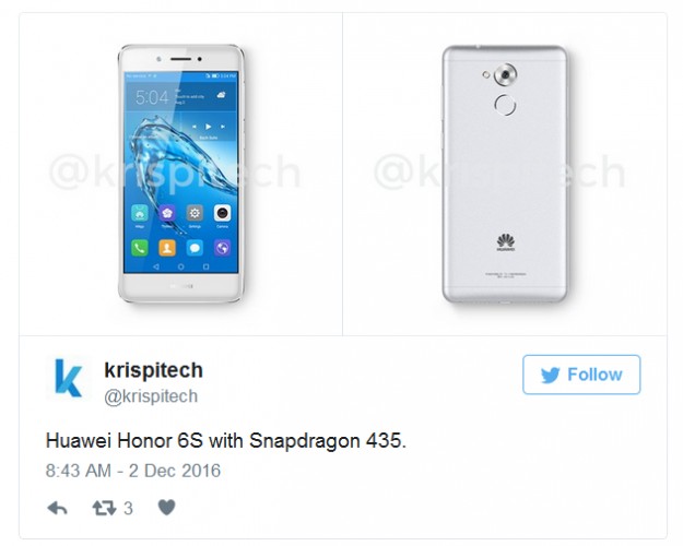 Металлический бюджетник Honor 6S засветился на пресс-рендереПользователь сервиса микроблогов Twitter с ником @krispitech сегодня опубликовал первые рендерные изображения еще неанонсированного смартфона Honor 6S - доступной версии флагмана Honor 6X.