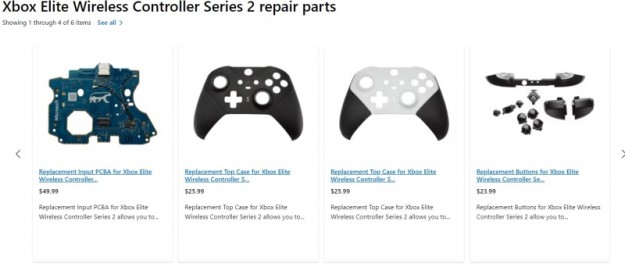 В продаже доступны платы Input PCBA, лицевые панели геймпадов, стики, кнопки и др. Возможность осуществить самостоятельный ремонт контроллера, например, если возникла проблема с дрейфом стиков, упростит решение мелких проблем. Ранее пользователям приходилось искать компоненты и инструкции по их замене в сторонних источниках или же вовсе покупать новые геймпады, стоимость которых составляет $60 за стандартный беспроводной контроллер и $180 за версию Elite Series 2.