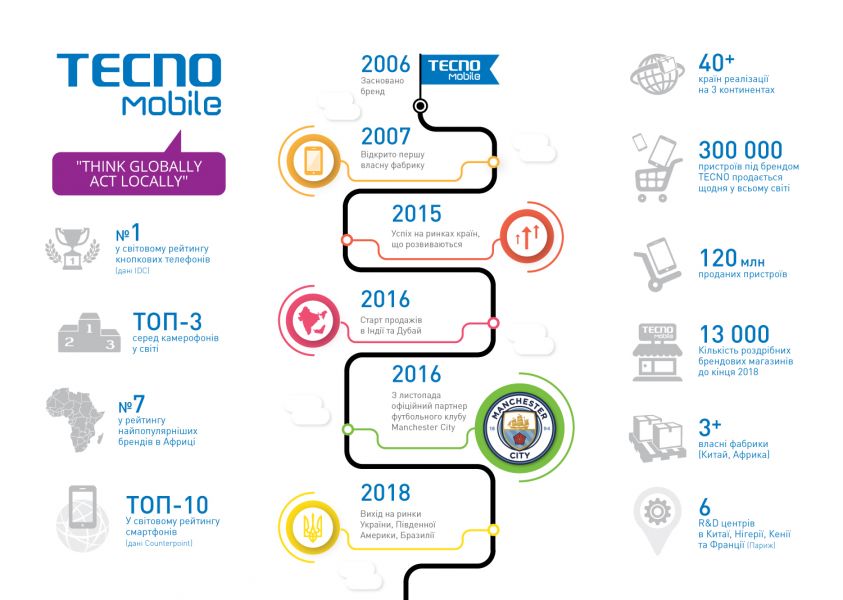 Премиальный мировой бренд смартфонов Tecno, входящий в ТОП-10 производителей смартфонов по версии исследовательского центра Counterpoint Research, выйдет на украинский рынок в уже 3 квартале 2018 года. В компании заявляют, что в первую очередь в Украине будут презентованы инновационные и доступные камерофоны с выдающимися фотовозможностями. “Мы с гордостью готовы презентовать свою продукцию на украинском рынке,” сообщил Джеймс Чен (James Chen), руководитель бизнеса TECNO Mobile в Украине, “Сейчас наша основная цель - познакомить украинцев с новейшими продуктами мирового уровня и привлечь в Украину максимум опыта и ресурсов бренда”.