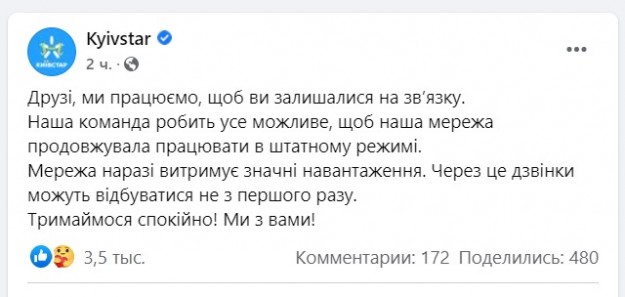 Мобильный оператор Киевстар - обращение к клиентам. КонтактыДрузья мы работаем, чтобы вы оставались на связи. Наша команда делает все возможное, чтобы сеть продолжала работать в штатном режиме. Держимся спокойно! Мы с вами! Контакты оператора: