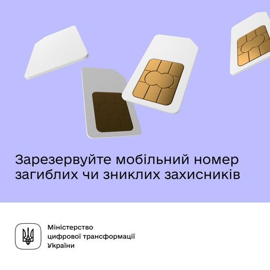 Українці, чиї близькі загинули або зникли безвісти, захищаючи країну, зможуть зарезервувати їхній номер телефону. Так він не потрапить до нового абонента протягом 2 років з дня останнього користування. Як зарезервувати номер: