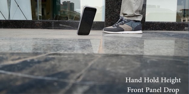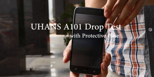 На видео на трубке надет чехол. В компании уверяют, что он вносит немалую часть общей пользы в сбережение сохранности корпуса. И это их собственная разработка. UHANS A101 падал на мраморный пол с разной высоты, но разбить его не получилось. Даже если ронять его прямо на торец или на дисплей, все равно он оставался целым.