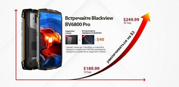 Мощный защищенный смартфон Blackview BV6800 Pro можно купить с большой скидкой с 10 сентябряКогда Blackview представила флагманский BV6000 на международный рынок в мае 2016 года, он считался самым продаваемым прочным телефоном с защитой по стандарту IP68. По состоянию на август 2018 года производитель продал более 10 миллионов экземпляров этой модели. Сегодня представители Blackview объявили, что началась предпродажа преемника легендарной серии BV6000 - смартфона BV6800 Pro, с возможностью предзаказа через официальный сайт. С 10 сентября 11,00 по Киеву/Москве и по 1 октября цена телефона будет зафиксирована на отметке $189,99 (возможность сэкономить 24%), ежедневно увеличиваясь на 3 доллара. Дополнительно покупатель получает бесплатно подарок на сумму в $40 (беспроводную зарядку и защитное стекло). Переход от Blackview BV6000 к BV6800 Pro - это не только обновление внешнего вида, это еще и обновление ПО с добавлением большого количества новых функций, которые укрепляют его позиции в категории универсальных смартфонов для работников любых профессий. Во-первых, сейчас в топовых высокопроизводительных устройствах для покупателя стало важным наличие различных сертификатов. И моделью BV6800 Pro производитель стремится сделать шаг вперед в сегменте трубок, устойчивых к взрывам и другим чрезвычайным ситуациям. BV6800 Pro имеет сертификацию по стандарту IP68, IP69K и MIL-STD-810G. Вы можете использовать его под водой на глубине до 6 футов в течение 2 часов, а его падение с высоты до 3 метров никоим образом не отразится на трубке. Само устройство не боится коррозии и больших изменений температуры, и оно защищено от струй высокого давления и временного погружения под воду, а также устойчиво к вибрации и ударам. Повысить лояльность покупателей к модели BV6800 Pro производитель решил за счет обновления программного обеспечения и аппаратной начинки. Последняя интересна за счет фронтальной 8 Мпикс. камеры и двойной основной камеры Sony IMX298 на 16 Мпикс. Ее дополнили модулем на 8 Мпикс. и несколькими режимами съемки, в том числе и «эффект съемки DSLR». К тому же смартфон позволяет снимать под водой на протяжении нескольких часов. В корпус телефона встроен 5,7-дюймовый дисплей с FHD разрешением и соотношением сторон 18:9. Картинка яркая и хорошо сочетается с жестким корпусом, который удобно лежит в руке. Чтобы сохранить как можно больше ваших воспоминаний, BV6800 Pro работает на новой ОС Android 8.0 и оснащен 8-ядерным процессором с 4 ГБ оперативной памяти и 64 ГБ встроенной. Также трубкой поддерживается сертификация GMS (Google Mobile Services), что означает поддержку основных и самых важных сервисов защиты и безопасности на уровне операционной системы и сервисов Google.