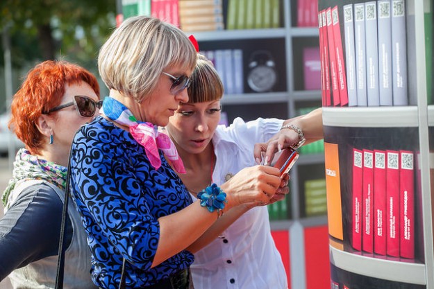 Виртуальные книжные полки обосновались в Кировограде по адресу ул. Дворцовая, 13. На корешках книг размещены специальные QR-коды, с помощью которых книги можно бесплатно загрузить в электронных форматах через сеть Wi-Fi. Мобильная библиотека впервые была открыта в августе 2013 года в Киеве на улице Крещатик. С тех пор передвижные конструкции с электронными книгами успели побывать в Одессе, Львове, Виннице, Донецке.