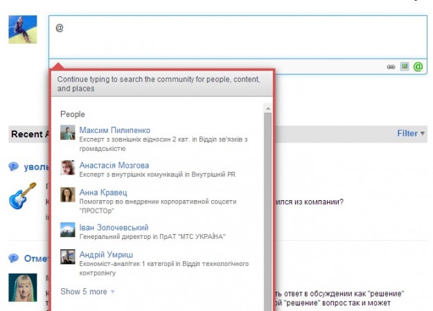 «МТС Украина» запустила собственную социальную сетьКомпания «МТС Украина» создала для своих сотрудников корпоративный социальный портал «Простор». Это универсальное рабочее пространство, которое объединяет в себе функционал Интранета, социальных сетей Facebook, LinkedIn, а также инструменты проектного менеджмента.