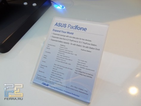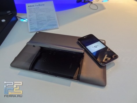 Как и ожидалось, компания ASUSTeK Computer на Mobile World Congress 2012 окончательно представила ASUS Padfone. Напомним, это смартфон с опциональной док-станцией в виде планшета. Модель впервые засветилась на еще в прошлого начале лета на выставке Computex 2011. На выставке нашим представителям удалось подержать в руках эту интересную модель и сделать небольшой видео обзор. Смотрите и наслаждайтесь: Сам смартфон оборудован 4,3-дюймовым сенсорным дисплеем, изготовленным по технологии Super AMOLED, с разрешением qHD (960 x 540). В качестве аппаратной платформы используется двухъядерный Qualcomm Snapdragon S4 с тактовой частотой 1,5 ГГц, а в качестве программной - Android 4.0 Ice Cream Sandwich. Среди других параметров - 8-мегапиксельная камера, от 16 до 64 ГБ флеш-памяти, слот MicroSD, HDMI, A-GPS, гироскоп, аккумулятор емкостью 1520 мАч. Коммуникационные опции включают WCDMA (900, 2100 МГц), EDGE / GPRS / GSM (850, 1800 и 1900 МГц) и HSPA+. В док-станции сенсорный дисплей имеет диагональ 10,1 дюйма и разрешение 1280X800 пикселей. Начало поставок запланировано на апрель.