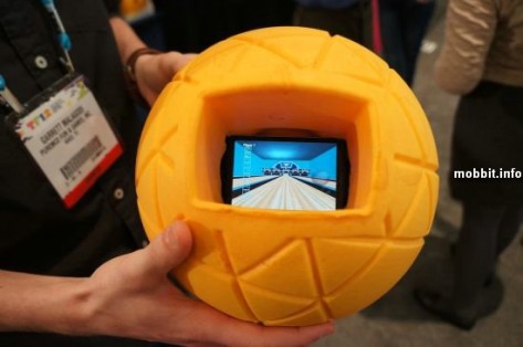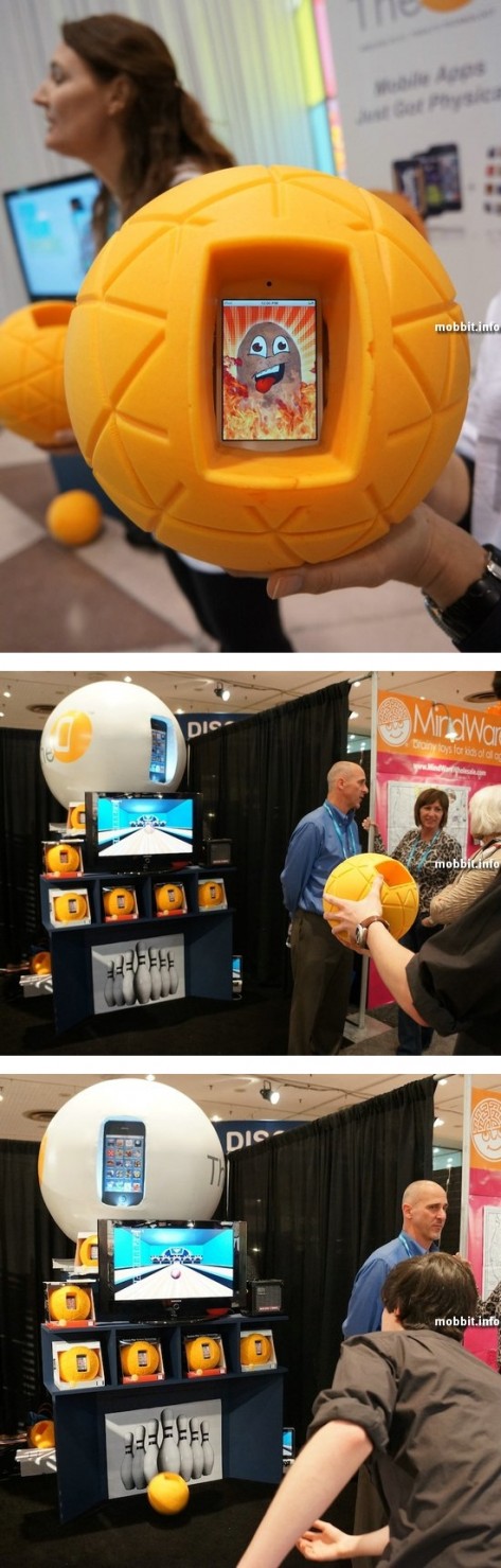 Большинство игр для смартфонов построены по одному и тому же принципу – вы нажимаете кнопки и напряженно наблюдаете за действием на экране. А вот мяч TheO позволит вам сыграть с телефоном и в более подвижные игры. Не волнуйтесь, ваш iPhone не пострадает – он укладывается в специальную нишу в мяче, надежно там закрепляется и служит датчиком движения. Получившийся комплект – это контроллер по типу Wii или Kinect, он позволяет играть в боулинг (в этом случае смартфон следует подключить через Wi-Fi к телевизору), «горячую картошку», «социальную интерактивную игру Interrogo» и т.д. Размером TheO с футбольный мяч и довольно легкий. Он совместим с iPhone, iPod и Android-смартфонами (со встроенным акселерометром) с диагональю 4 дюйма и менее. Девайс выйдет на рынок в мае по цене 25 долларов (3 вышеперечисленные игры входят в комплект). Два видео далее.