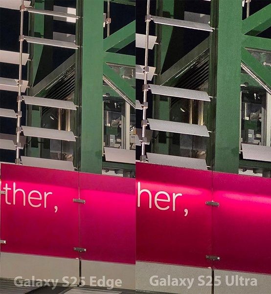 Galaxy S25 Edge оснащений основною 200-мегапіксельною камерою, здатною, за заявою Samsung, робити знімки з 2-кратним оптичним зумом. Однак у тесті 4-кратного зуму Edge обійшов Ultra завдяки, імовірно, поліпшеним алгоритмам обробки, ефективнішій обчислювальній фотографії та оптимізованому ПЗ. Ultra, незважаючи на складнішу конфігурацію камер, поступився.
