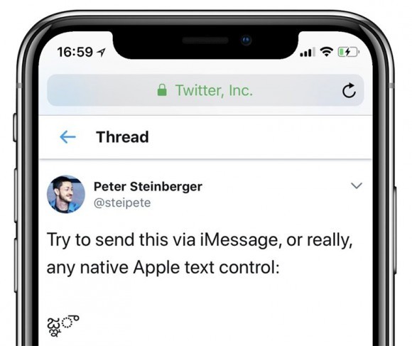 Был обнаружен еще один способ «вырубить» систему на iPhone, iPad или Mac, буквально одним сообщением. На этот раз речь идет о специфическом символе из индийского языка телугу, его достаточно отправить через iMessage, Facebook Messenger, WhatsApp, Gmail или Outlook, чтобы вызвать сбой в iOS 11.2.5 и macOS 10.13.3, самых свежих версиях программных платформ Apple.