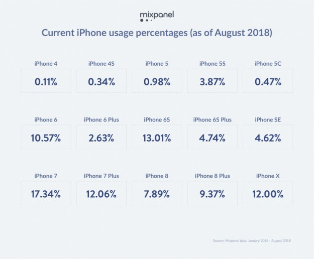 Аналитическая компания Mixpanel опубликовала результаты исследования, которое она провела, чтобы выяснить, какими моделями iPhone сейчас чаще всего пользуются.