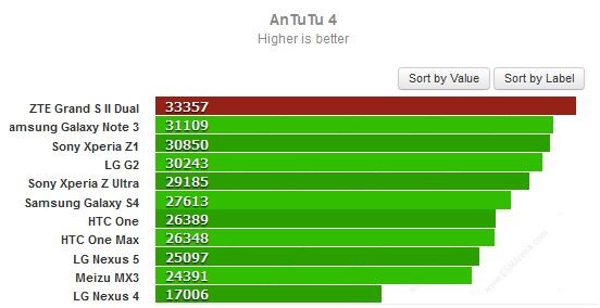 Неанонсированный ZTE Grand S II Dual превзошел в AnTuTu Galaxy Note 3Не представленный еще официально смартфон ZTE Grand S II Dual был замечен в популярном бенчмарке AnTuTu, где набрал впечатляющие 33357 балла.