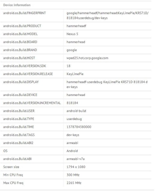 Nexus 5 «засветился» в бенчмарке GFXbench с Snapdragon 800Не анонсированный еще Nexus 5 появился в бенчмарке GFXbench. Благодаря этому стало известно, что аппарат будет оснащен чипом Snapdragon 800 от Qualcomm с четырьмя ядрами Krait 400, работающими на частоте 2.3 ГГц и графикой Adreno 330. Экран смартфона получит разрешение 1920x1080 пикселей.